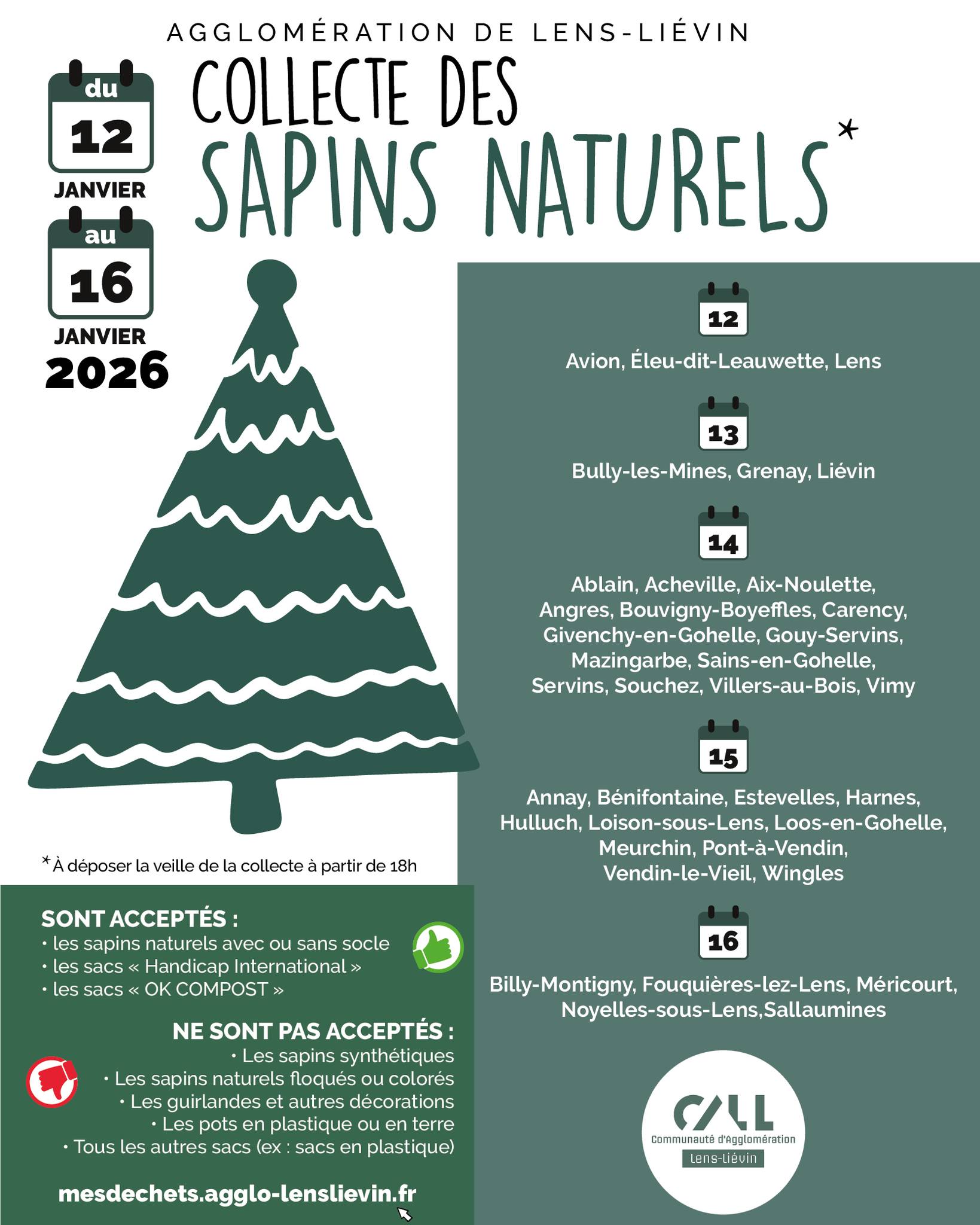 « Tous les Évènements collecte des sapins de noel janvier 15 « Vente de vêtements de seconde main cérémonie des voeux à la population » Ajouter au calendrier Google Agenda iCalendar Outlook 365 Outlook Live Détails Date : janvier 15 Catégorie d’Évènement: AGENDA Site : https://mesdechets.agglo-lenslievin.fr/blog/infos-service/collecte-sapins-2026/?fbclid=IwY2xjawOvPB9leHRuA2FlbQIxMABicmlkETFVem00S1pVMmNDVmJGZHQ0c3J0YwZhcHBfaWQQMjIyMDM5MTc4ODIwMDg5MgABHsG8wgsCKFR9fPfk1YWyFbay8q_hefaq2WEm9ISo5MTD7wjumWzj3aIk6yJt_aem_nuYW3gyjVgU38zr1abRpuQ